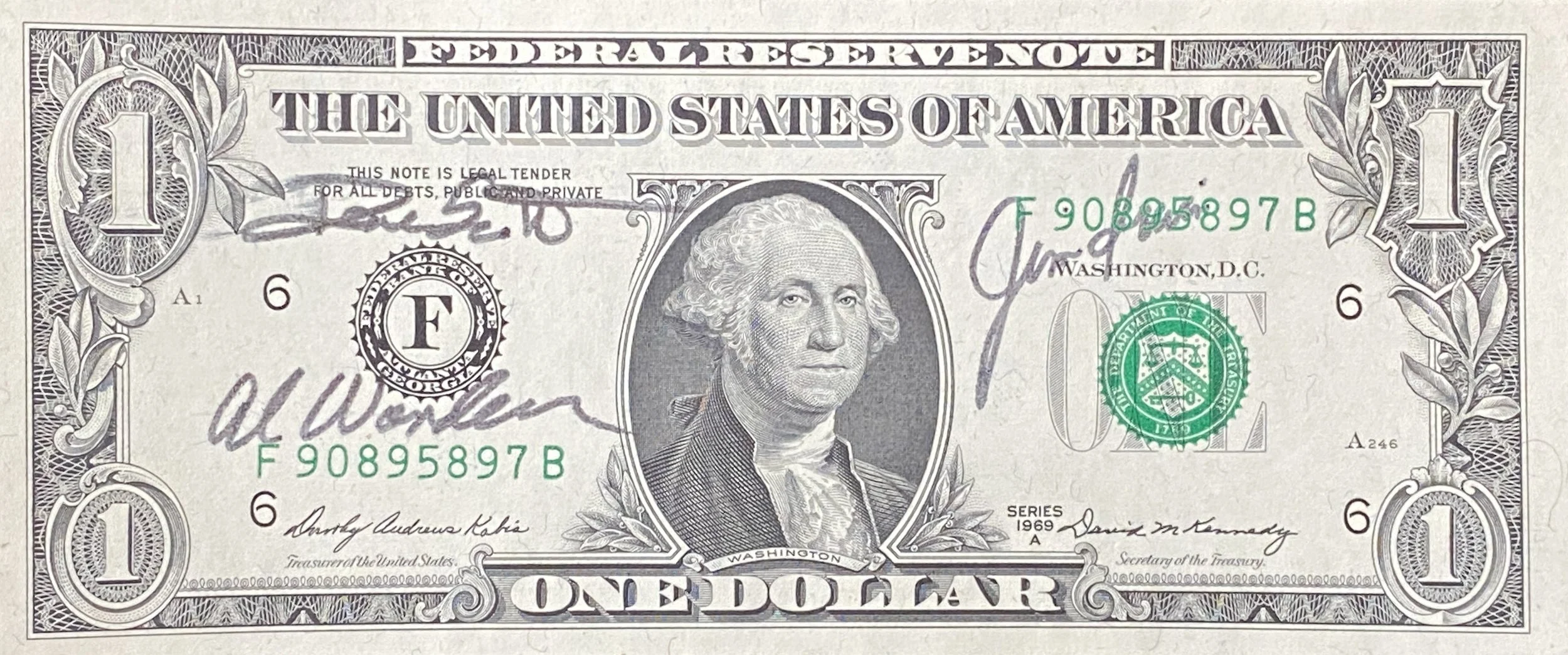 This bill was acquired directly from the personal collection of Robert B. Horne, who was the Boeing Crew Equipment Engineer assigned to the Flight Crew Support Team and Kennedy Space Center. Bob was responsible for gathering, tagging, inventorying, and packing the crew members PPKs. The bill remained in Bob’s possession from 1971 when it was returned to him by Lt. Col. Alfred M. Worden, Apollo 15 LMP, until it was acquired by the JSM in March of 2022.