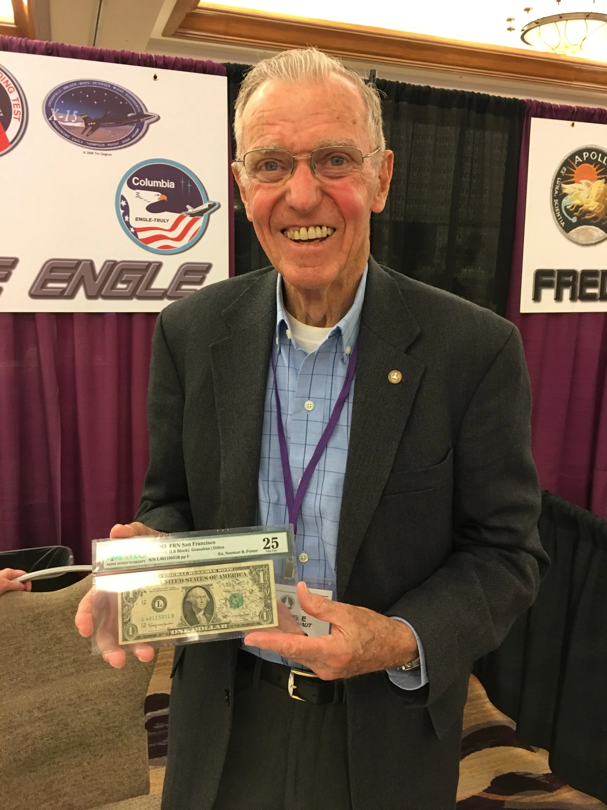 Joe Engle and the Space Flown $1 bill -- Reunited